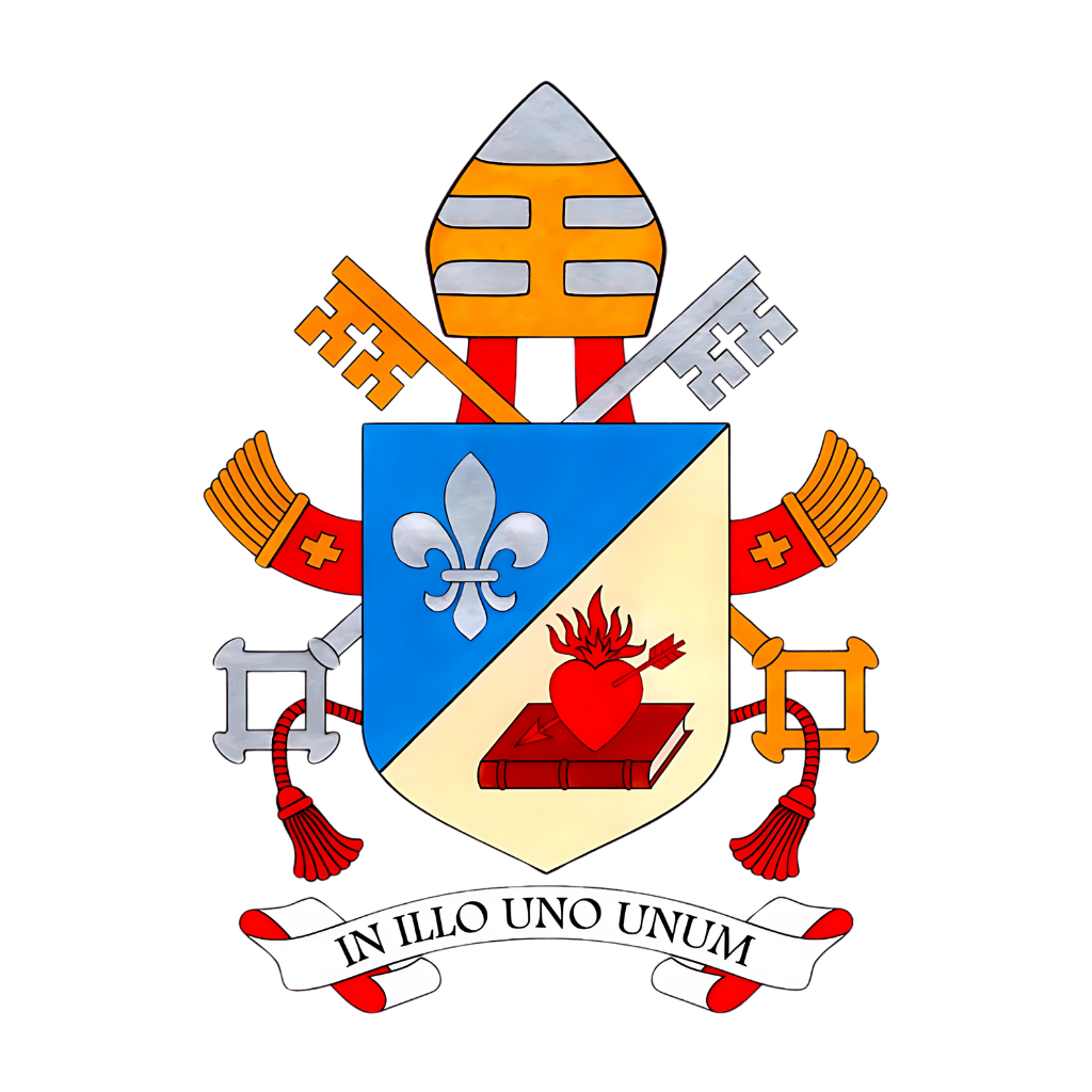 Mantendo os traços do brasão adotado em sua consagração episcopal, o Papa Leão XIV preservou também o motto “In Illo uno unum” – frase extraída de uma homilia de Santo Agostinho sobre o Salmo 127, que ressalta que, embora muitos em número, “no único Cristo somos um”.